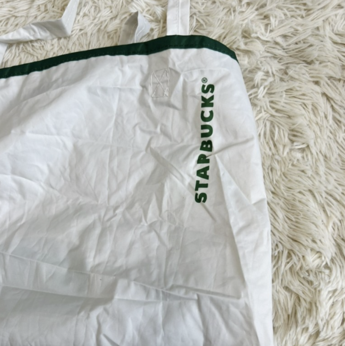참고로 스타벅스 폴더블 가방 장바구니의 재질은 폐 페트에서 추출한 원사로 제작이 되었다고 합니다.